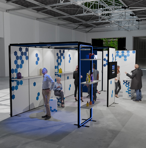 - Eigene Systeme – entwickelt für den professionellen Messealltag, schnell und werkzeuglos aufgebaut