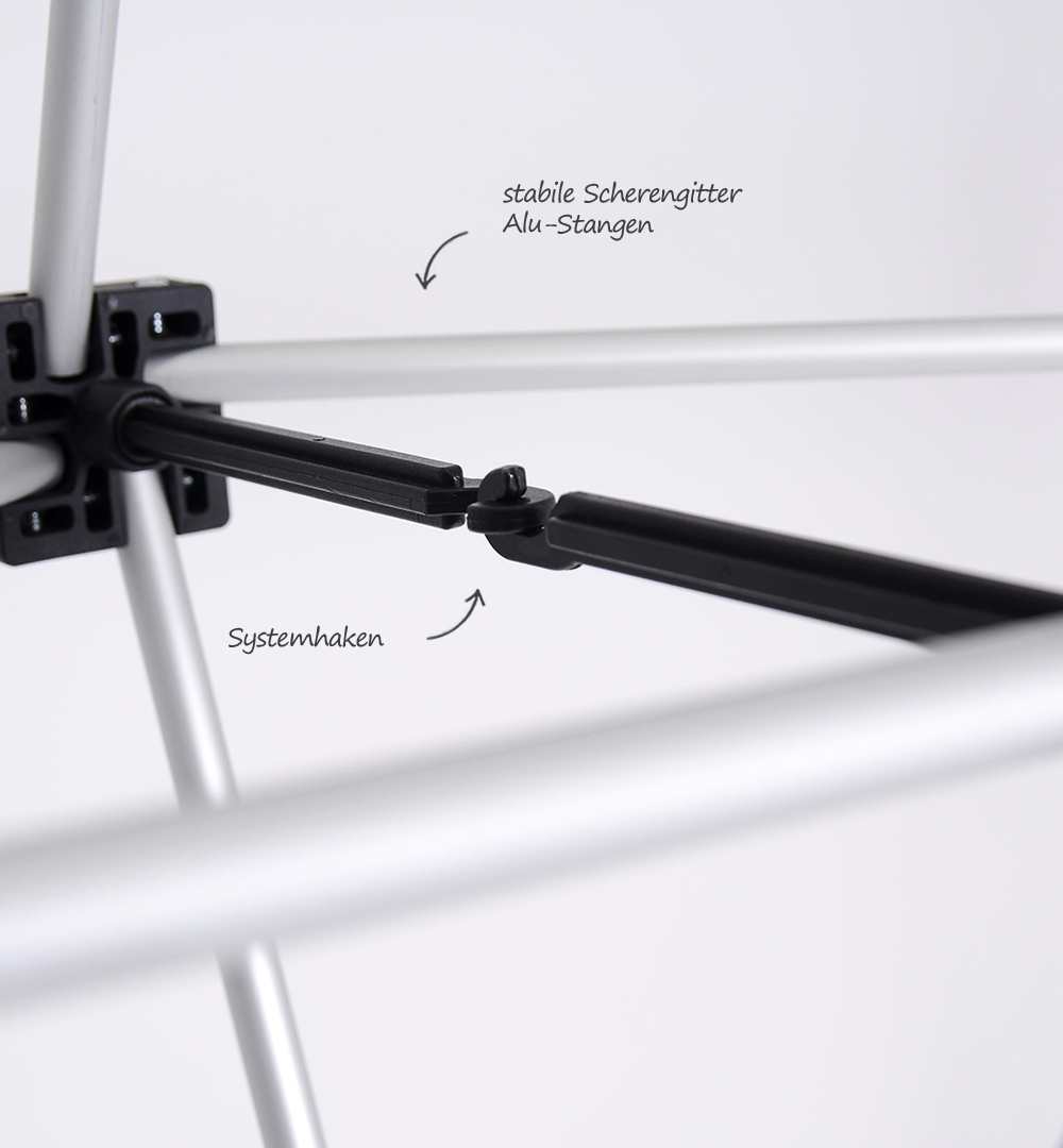 - Stabiles Aluminium-Faltdisplay mit Scherengittersystem und Magnetschienen