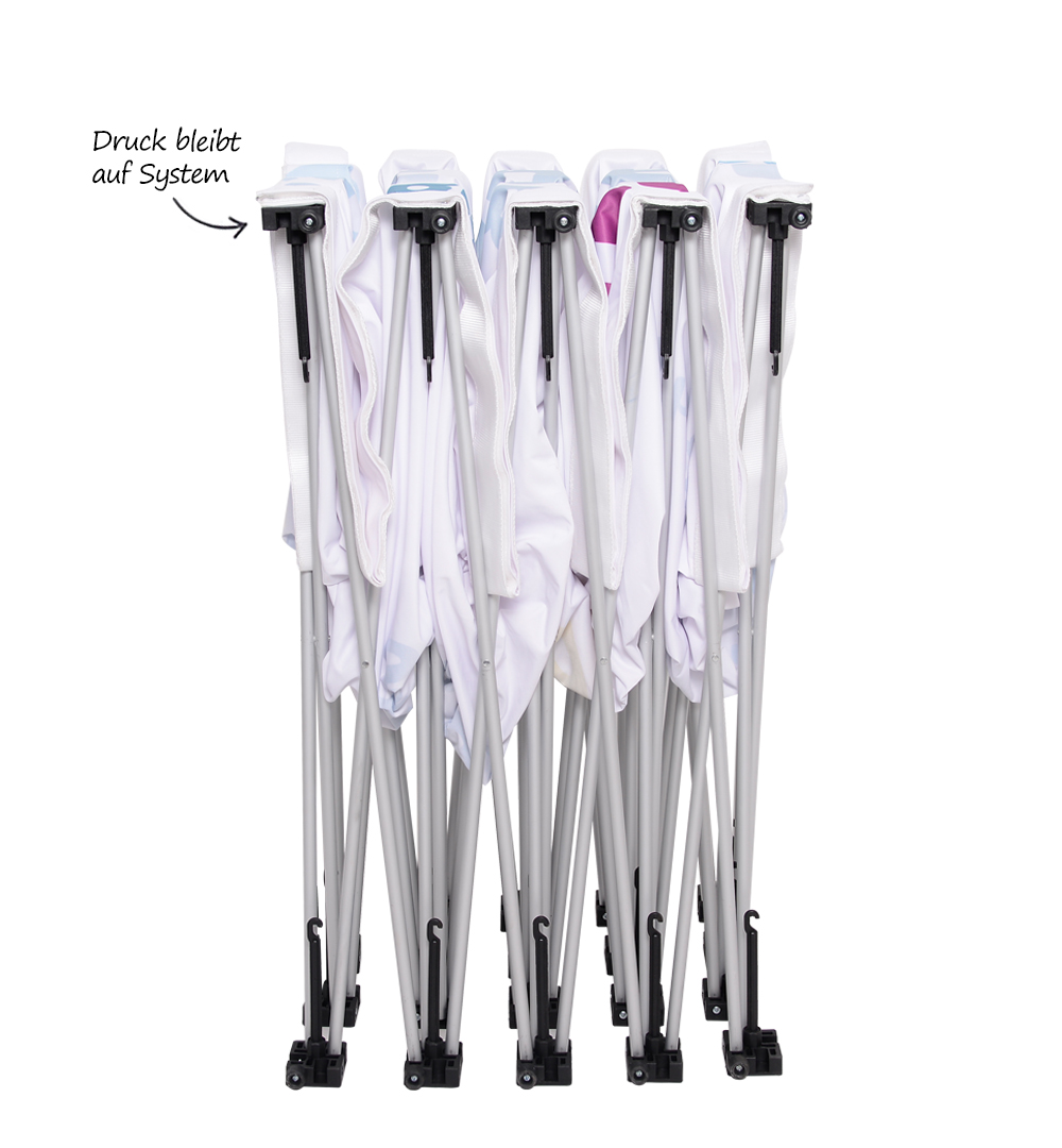 - Textil bleibt auf Gestell auch im gefalteten Zustand