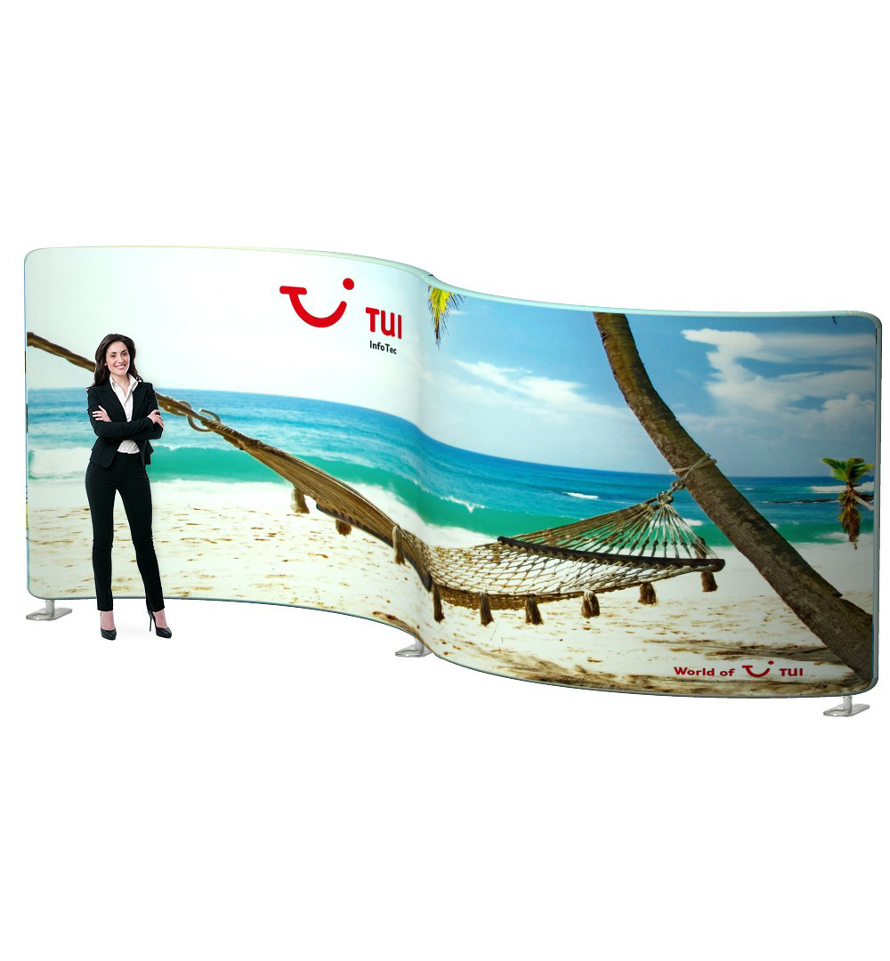 Textil Rohrstecksystem bestechend durch seine neue geschwungene Form. Schnell im Aufbau, leicht im PKW / VAN transportabel.