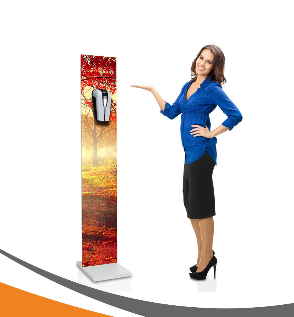 Desinfektionsständer Wood mit Sensor Printed Logo