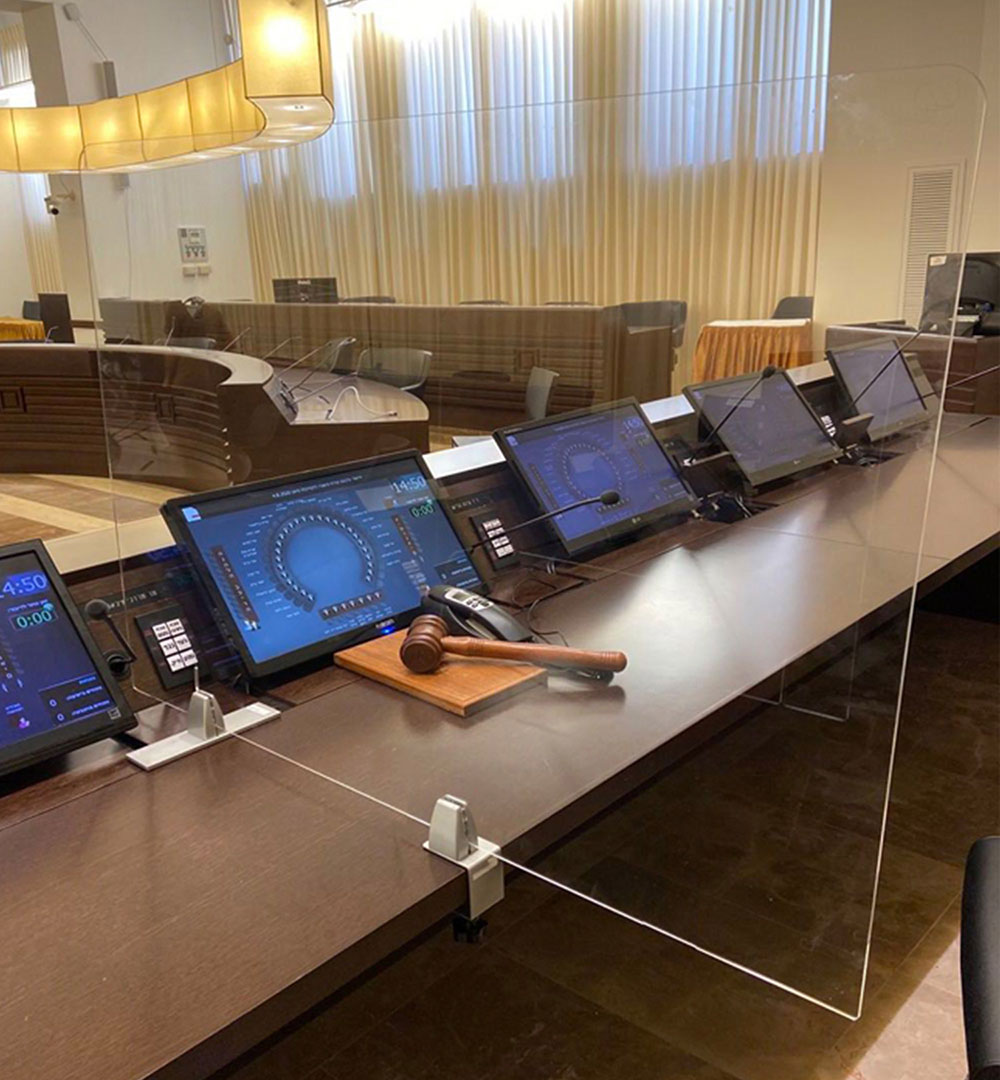 Acrylglas Trennwand zur Teilung von Schreibtischen für Büro- und Schulräume.