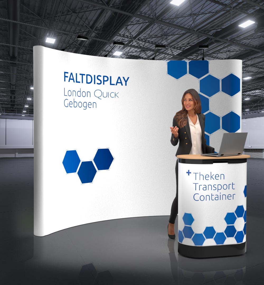 Ihre Messestände, Theken und Pop-Up-Systeme können mit Ihren Anforderungen mitwachsen: für verschiedene Veranstaltungen, Standgrößen oder Kampagnen. - ✔ Persönliche Beratung, 3D-Visualisierung & Druckservice