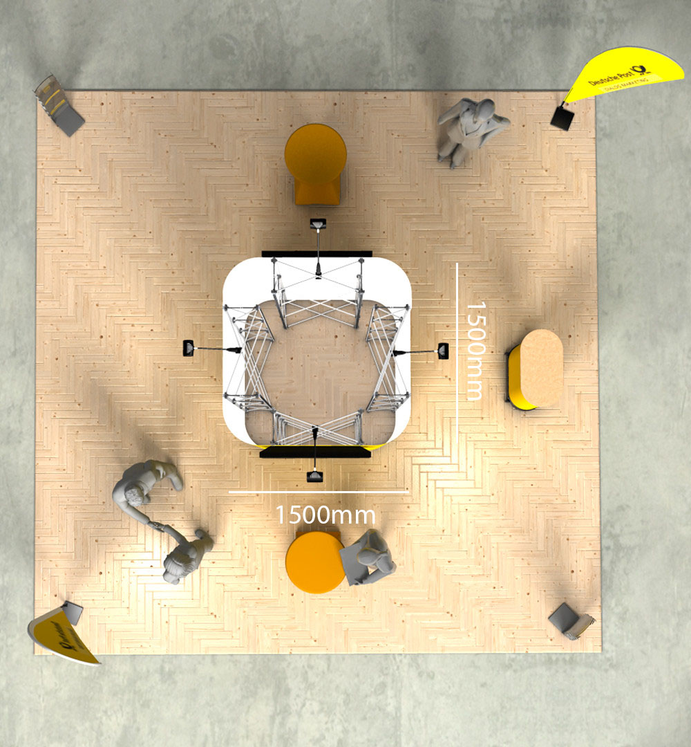 Inselstand Messeset 301 - Das innovative Pop Faltdisplay ist auffallend und formschön