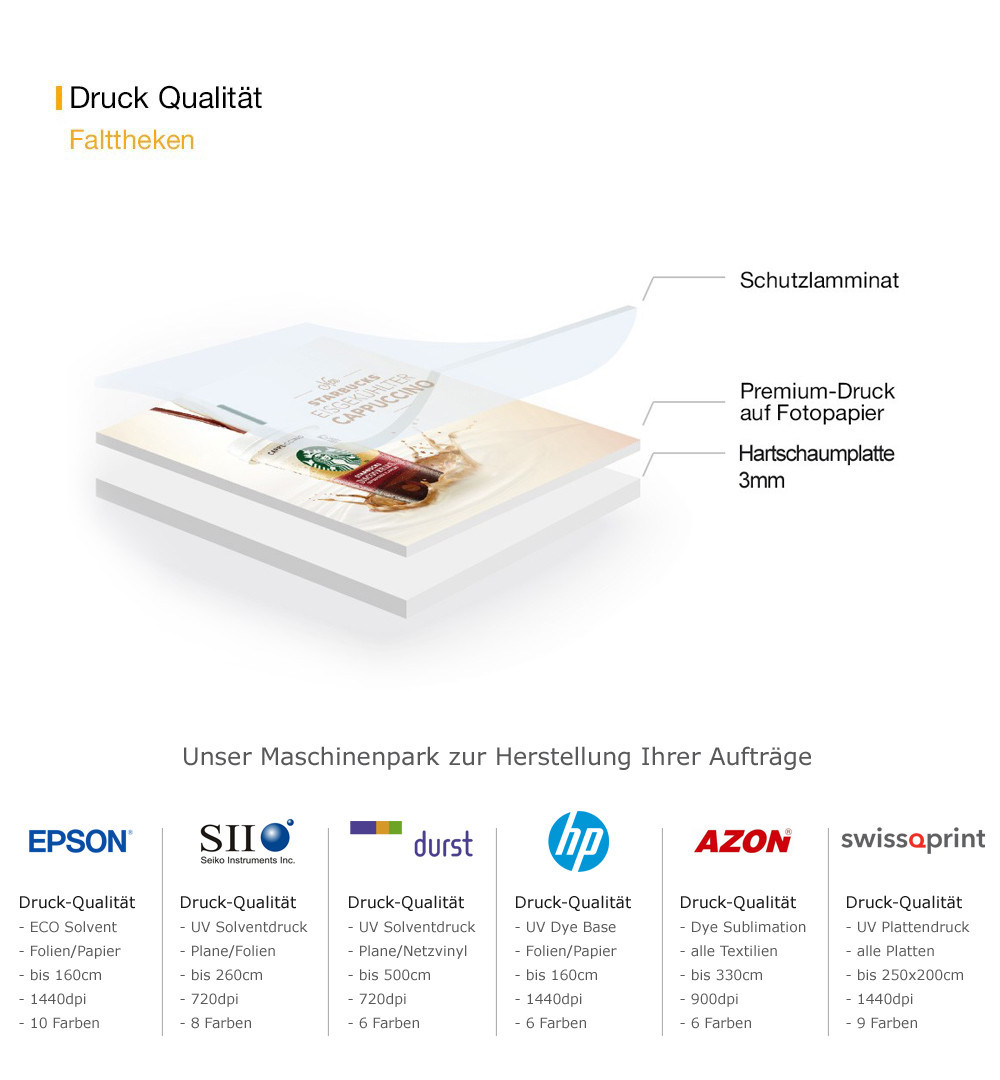 Die Druckpaneele bestehen aus stoßfestem Hartschaum oder optional aus Alu-Dibond für den Outdoor-Einsatz – wetterfest, langlebig und schlagfest.