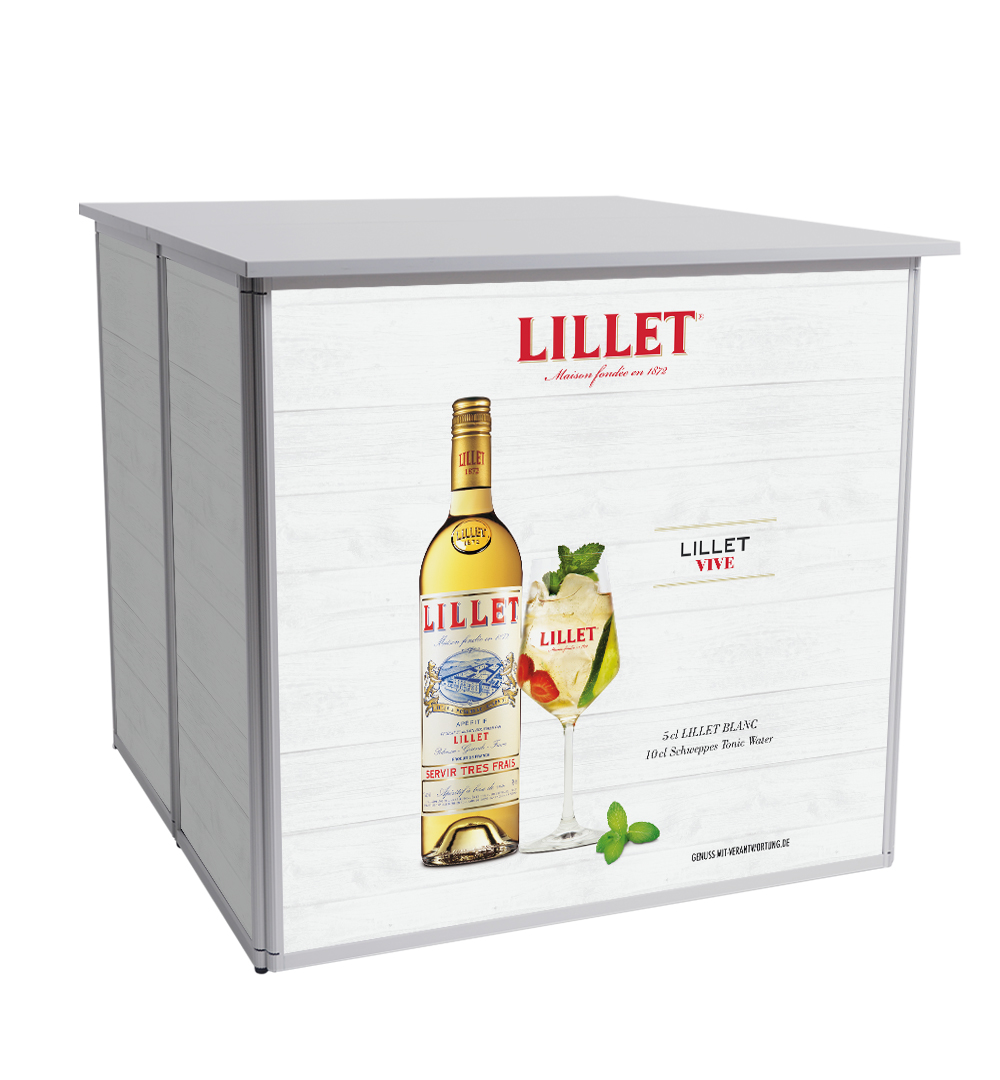 Würfeltheke – kompakte Messetheke für Messen, Events & Promotionaktionen
