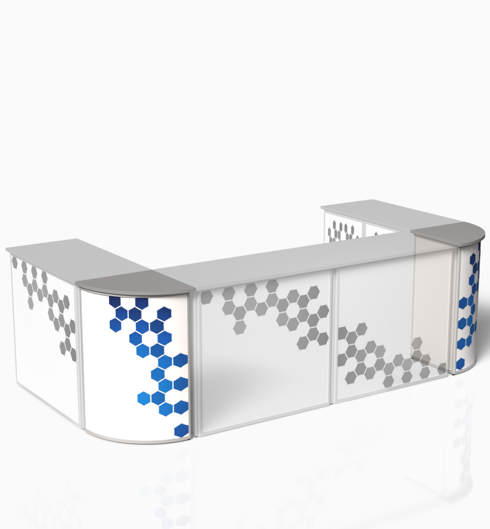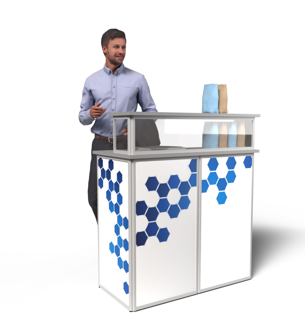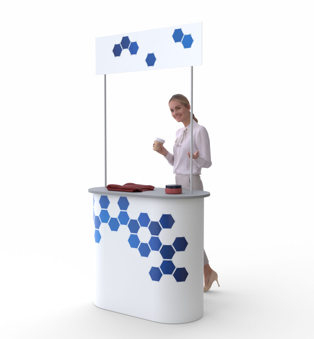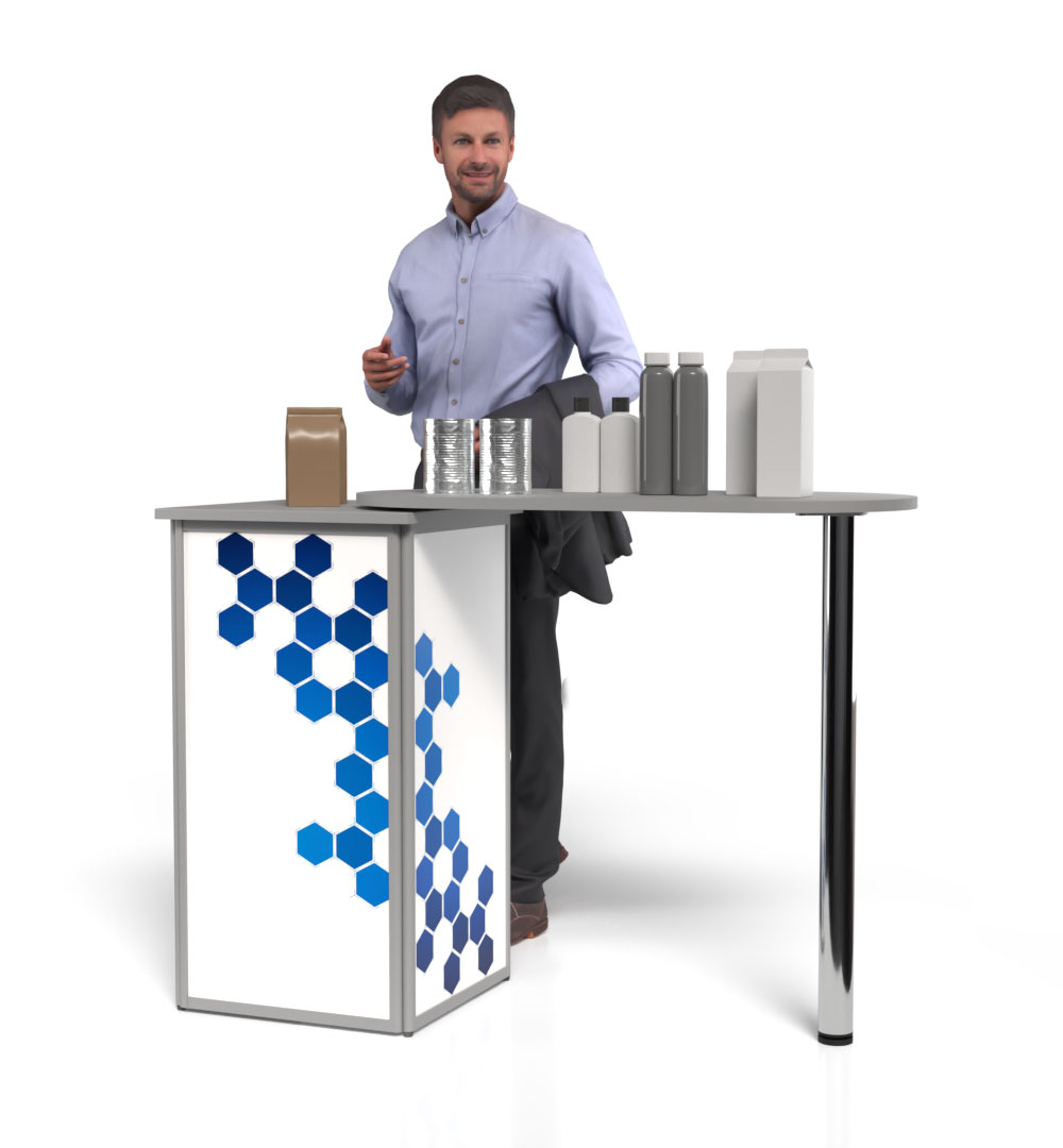 Nutzen Sie eine Messetheke mit Druck als direkte Verkaufsstation Ihrer Produkte. - Meetingpoint