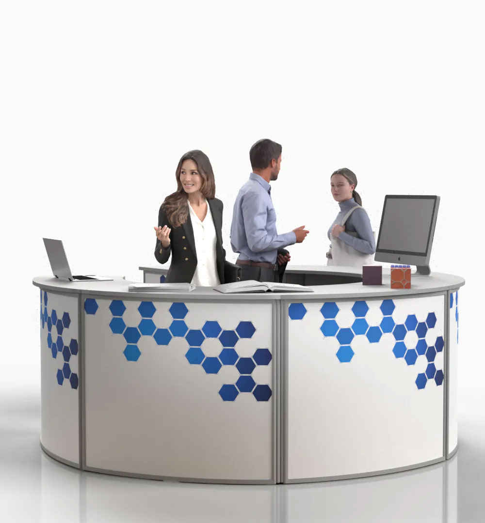 Bringen Sie Besuchern Ihre Produkte und Dienstleistungen näher. Präsentieren Sie Ihre Marke und Produkte effektiv. - Empfangs- und Informationsbereiche