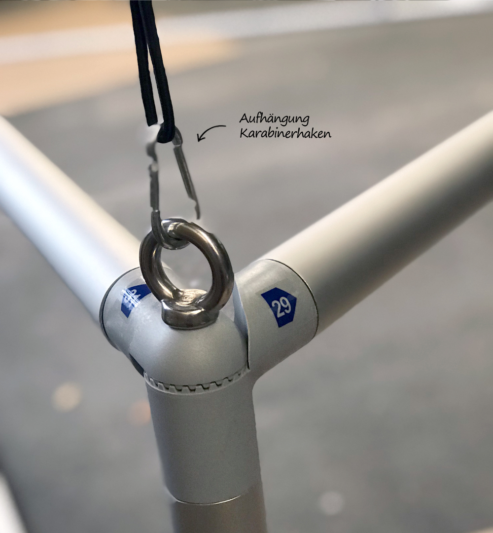 Deckenhänger Würfel. Textil Rohr-Clicksystem. Schnell im Aufbau, leicht im PKW / VAN transportabel.