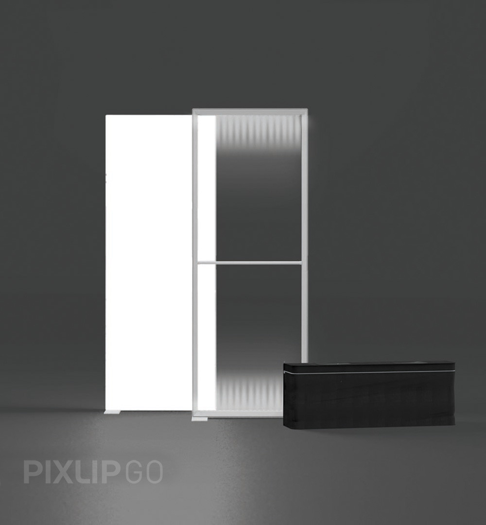 Die PIXLIP GO Lightbox mit 85 cm Breite ist die ideale Lösung, um Ihre Botschaft direkt auf Augenhöhe Ihrer Kunden zu präsentieren. Durch ihre kompakte Bauweise und die flexibel wählbare Höhe erfüllt sie selbst strenge Messevorschriften und lässt sich sowohl als eigenständiges Display wie auch als Bestandteil eines größeren Standkonzepts einsetzen.