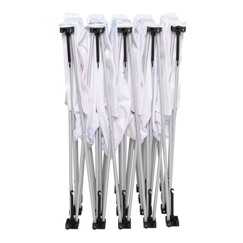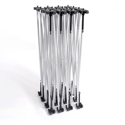 Durch Aluminiumrahmen und flexible Textilbespannung besonders leicht – transportiert im PKW oder Trolley, ideal für häufig wechselnde Veranstaltungsorte.
