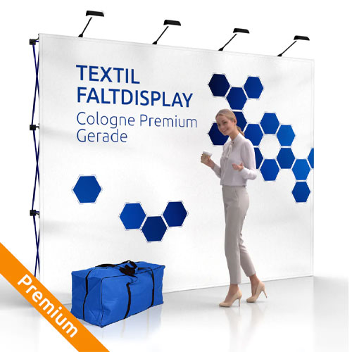Messewände sind modulare Präsentationssysteme (z. B. SEG-Textilrahmen, LED-Lightbox, Rahmenstecksysteme), die als gerade Wand oder in L-/U-Formen eingesetzt werden. Ein Faltdisplay (Pop-Up) nutzt ein faltbares Scherengitter für eine große, nahezu fugenlose Fläche und einen Aufbau in Minuten. Beide Varianten sind in der Regel werkzeuglos, PKW-tauglich und für Messen, Events, Roadshows sowie den PoS geeignet; passendes Transportzubehör ist häufig enthalten.