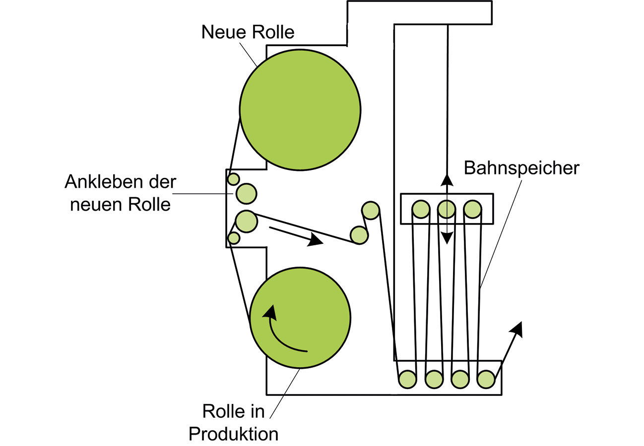 Papierwechsel | „fliegender Rollenwechsel“ während des laufenden Betriebes | mit Rollen-Bogen-Anleger oder Nonstop-Einrichtung während des laufenden Betriebes möglich |